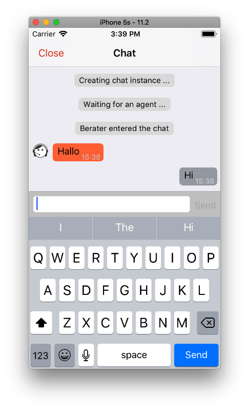 IAGENT.presentIChat(parentViewController: UIViewController, nickname: String, category: String, animated: Bool = true)parentViewController: parent view controller that will hold the navigation controller of the novomind iAGENT Chat view controllernickname: nickname of the customercategory: category the chats will be routed inanimated: display the novomind iAGENT Chat view controller animated or not.