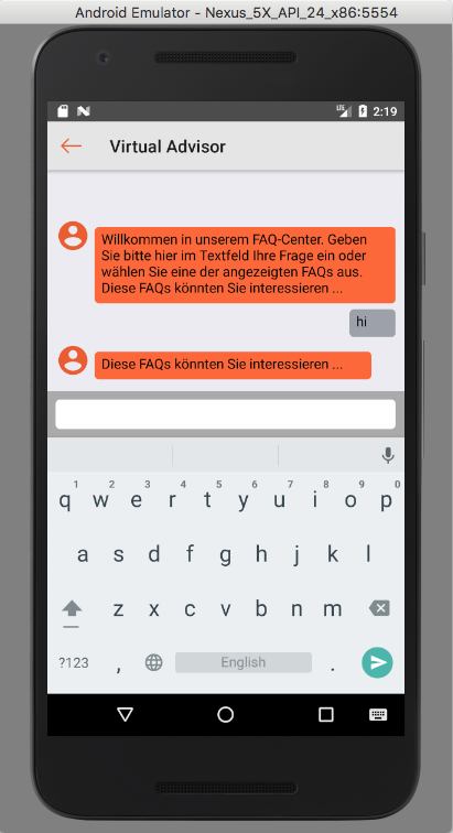 public void presentChat(Context context)Integrate virtual advisor in custom view