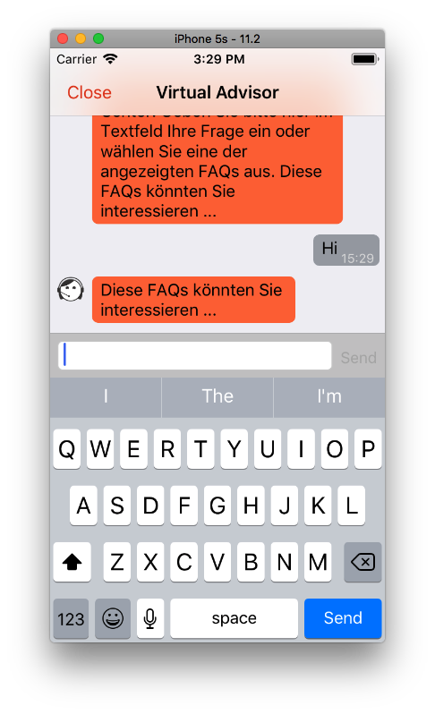 AskQuestionApi.start(question: String, completionBlock:(askQuestionResponse:AskQuestionResponse?, error:String?))The askQuestionResponse holds the virtual advisor answer, with these properties