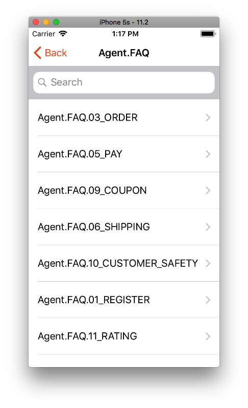 If you want to integrate this functionality in your own view you can easily add FAQs via code. iAGENT.sharedInstance.CONTEXT holds these properties