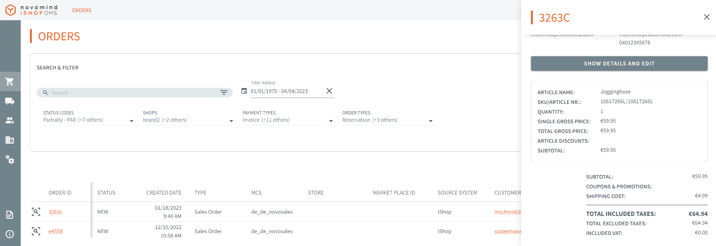 novomind iSHOP OMS is a lightweight order management system. It can be used as a full system for managing orders and shipments, but also simply as a buffer between novomind iSHOP and your own backend systems, such as the ERP system.
