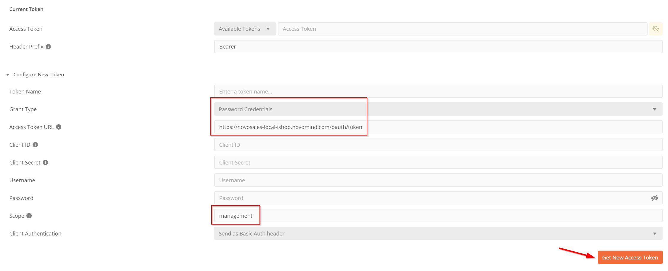 sqlSELECT client_id, client_secret FROM ishop.oauth_client_details WHERE client_id = 'api-client';Use this information and backoffice user credentials to request an OAuth2 token with Postman.